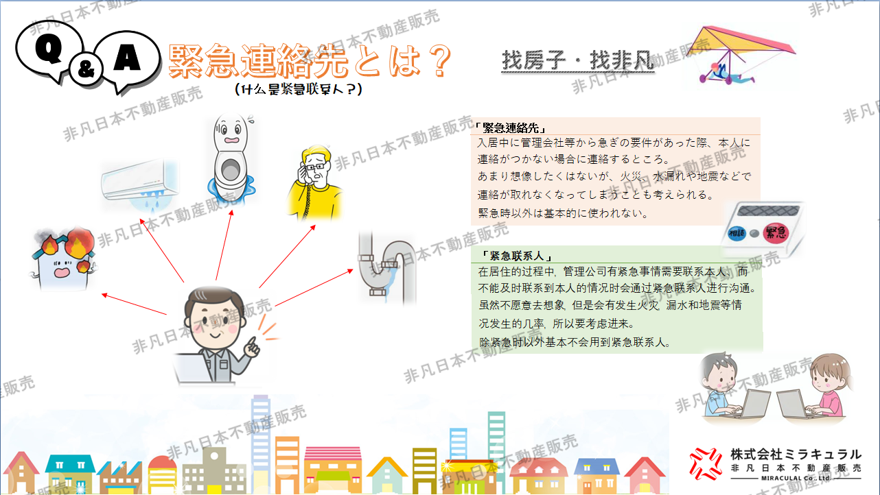 最近,通過保證公司而不是連帶保證人的租賃契約已成為主流,反而需要連帶保證人的物件比較少見。 根據保證公司和保證計劃的不同,使用保證公司時所需支付的費用大致為房租的30%到100%之間。例如,房租6萬日圓的公寓,在簽訂租賃合約時需要支付3萬日圓的保證費。此外,根據計劃的不同,每年或每兩年需要支付給保證公司約1萬日圓的更新費。 另外,由於保證公司也會進行嚴格的入住審查,多數物件和保證公司會要求提供緊急聯絡人(通常會要求日本人的緊急聯絡人)。對於第一次在日本租房的外國人來說,準備一位日本人的緊急聯絡人可能會比較困難。 我們公司可以提供許多外國籍人士容易通過審查,且不需要日本人緊急聯絡人和保證人的物件,歡迎隨時諮詢我們。